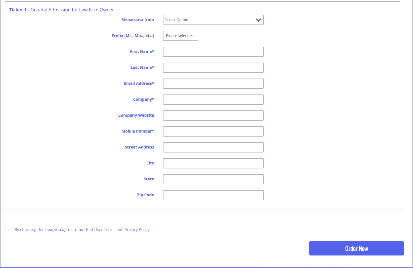 First, enter the company name as well as website of the attendee’s law firm.