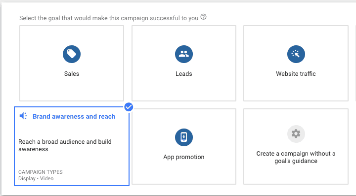 Step 1: Choose “Brand Awareness and Reach” from the new campaign goal selector in Google Ad Manager.