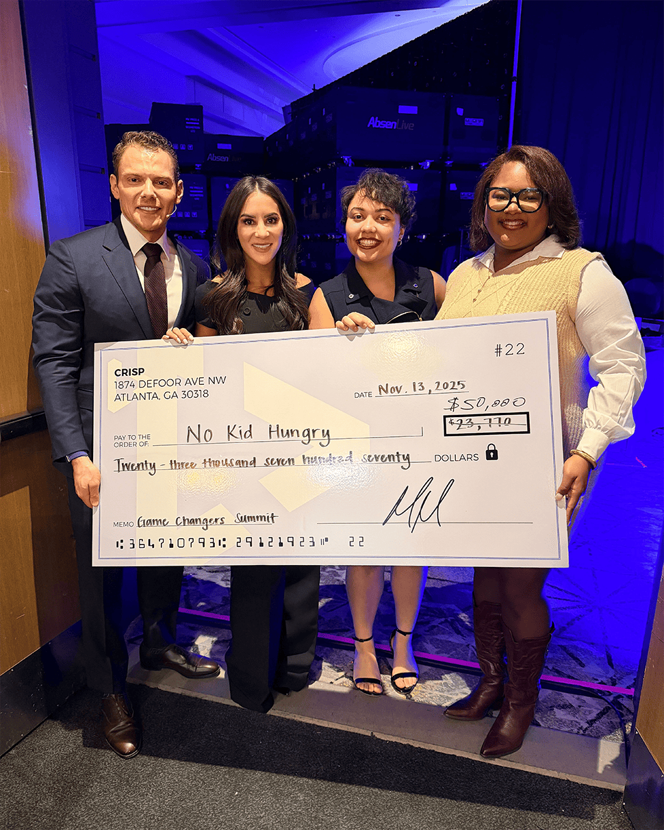 One hundred percent of the proceeds from the Summit swag shop and donations made directly by attendees went to supporting this worthy cause. Crisp then matched the total amount raised. Together, these legal game changers and Crisp presented $50,000 to help feed children across the country.